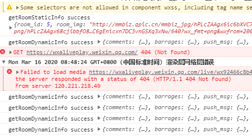 直播页面一直输出 getRoomStaticInfo success 如何屏蔽? 还有一些报错!