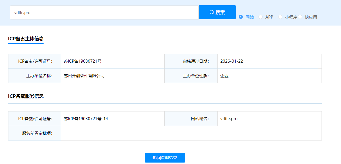 你好,网站https://vrlife.pro微信小程序打开显示无法确认该网页的安全性,请谨慎访问。我已经在小程序业务域名添加此域名并且按官方要求使用web-view组件。该网站宣传我们民宿的VR场景,无违规内容,属于误报,域名已备案并且配置SSL证书,网址备案号为:苏ICP备19030721号-14,望链接解封!