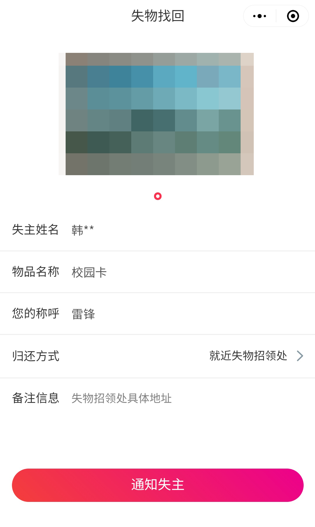 “失物码”是从微信“一物一码”这个功能得到的灵感。我们希望能用小程序码给我们的随身物品赋予可追踪找回的能力。因此我们印了一些携带不同参数的小程序码的不干胶贴,如果贴着小程序码的物品丢失后被他人捡到,其他人扫描二维码即可通知失主。