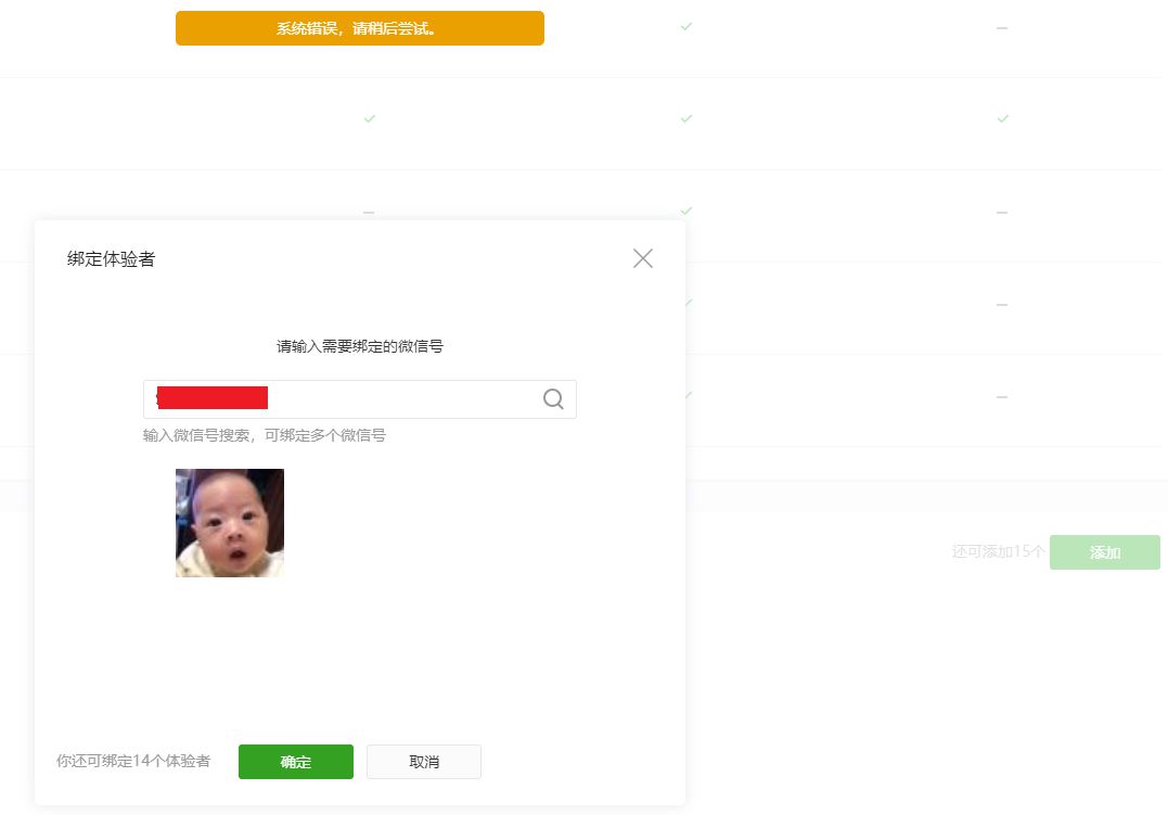 添加体验成员总是失败,提示“系统错误,请稍后尝试。”