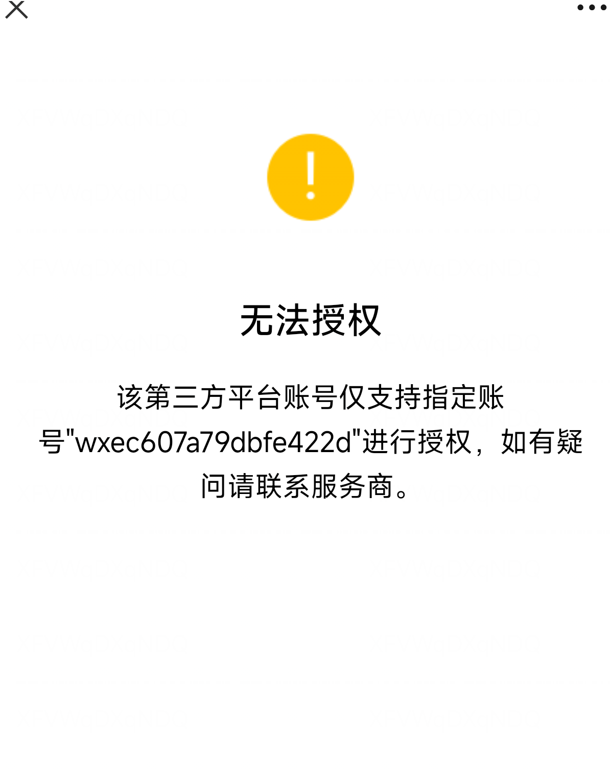 微信小程序使用第三方平台扫码授权时,出现该第三方平台账号仅支持指定账号进行授权,如有疑问请联系服务商。