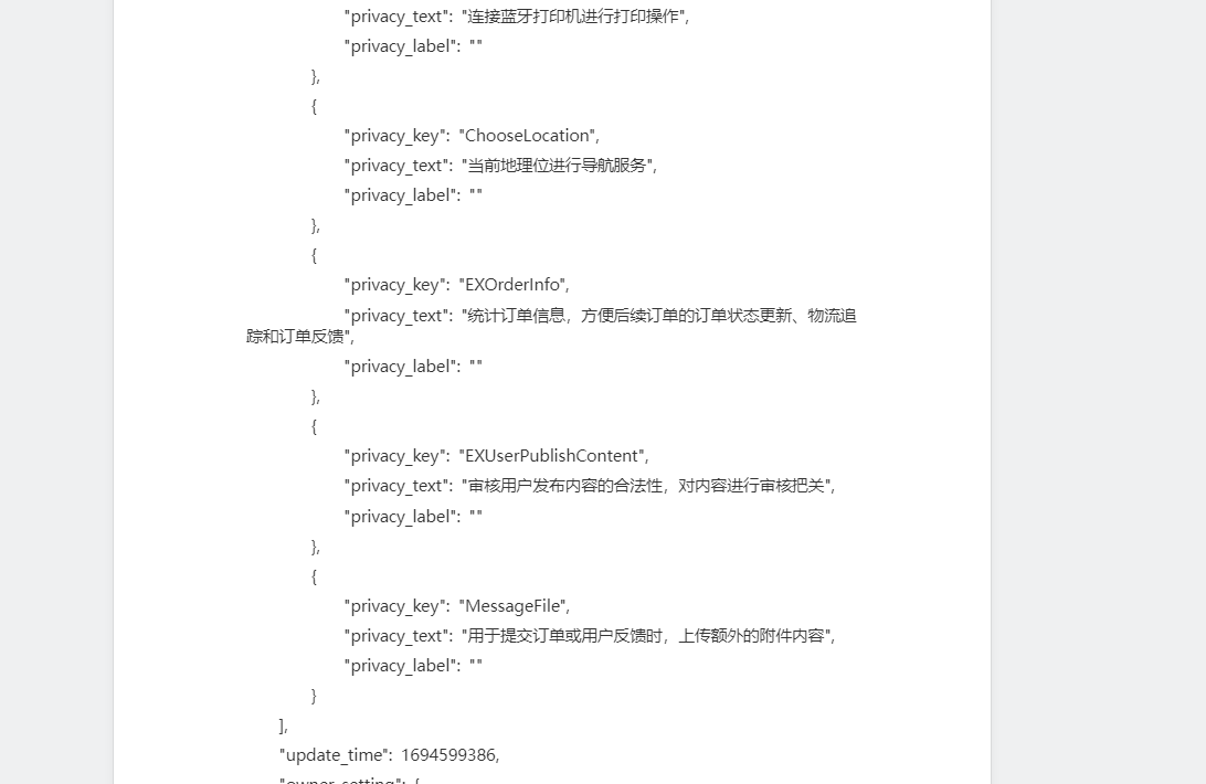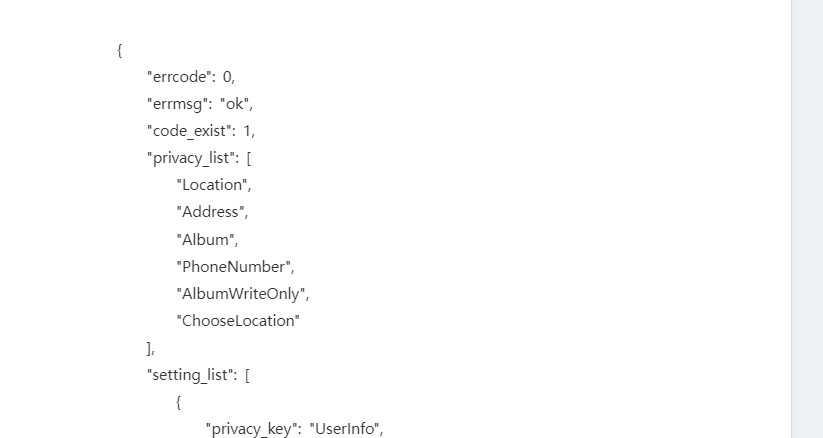 下图是通过 getprivacysetting 获取现网版本的隐私协议