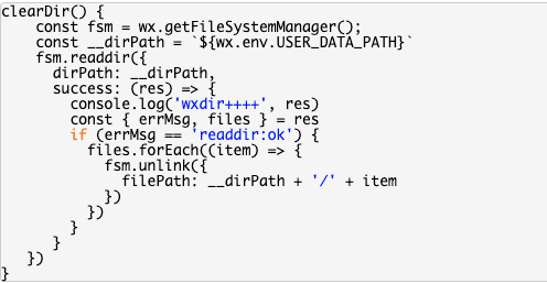 您好,我们今天测试,小程序提供的录音接口返回给我们的是临时文件,不是缓存文件,所以您这个接口找不到对应文件,删除不了,我们现在需要长时间不间断的录音,所以会有大量的临时文件,不能删除临时文件,VIVO、OPPO的一些低端手机就没法录音,请您再看看有没有解决方案,谢谢