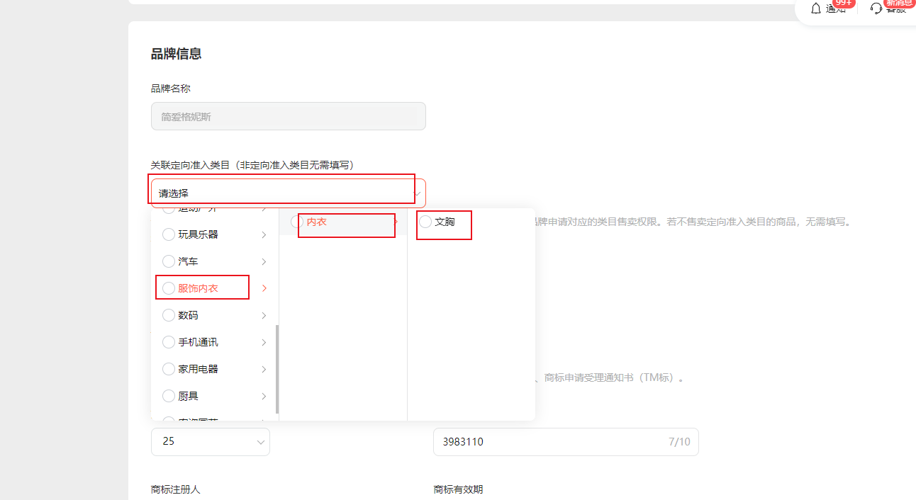 申请品牌管理,在这里选择类目时,服饰内衣大类,进去二级分类只有内衣,男装,女装等分类没得选择?
