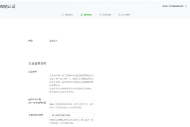 第二步:填写资料:选择认证主体类型,提交相应的认证材料。