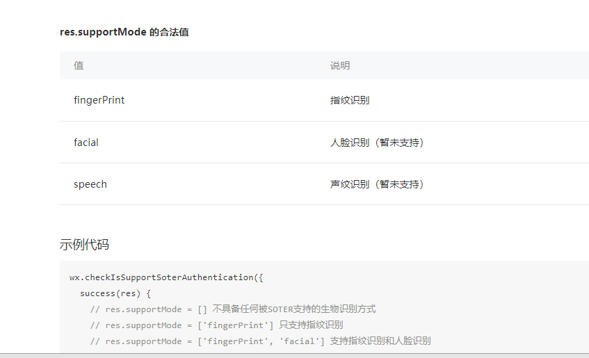 文档说不支持facial 但是又可以用了,代码示例还写上 ,这个文档看的头大,这次是偷偷更新了checkIsSupportSoterAuthentication API?上线的小程序更新了微信7.0的版本就出现了问题,原来这个api 返回的支持结果faceid和指纹的统一显示是fingerprint 现在又做了区分,更新的时候能不能给一个提示呢,文档也同步下吧,不然又要我们开发者自己取测试,谢谢