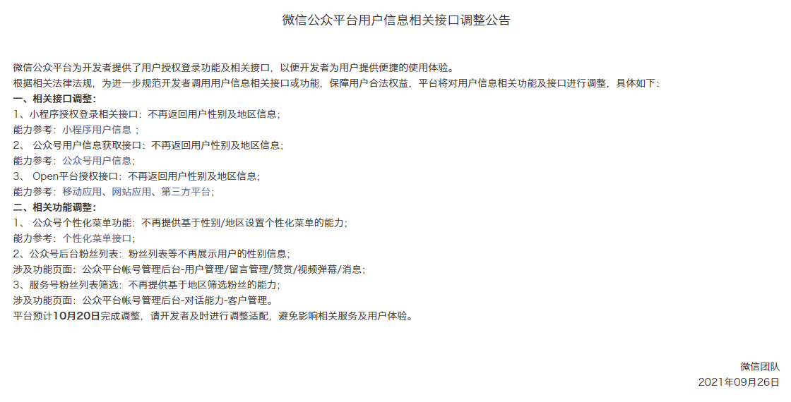 如图,调整后,上边的微信开放数据展示(性别、城市、省份),会受影响吗,以后还可以正常展示吗