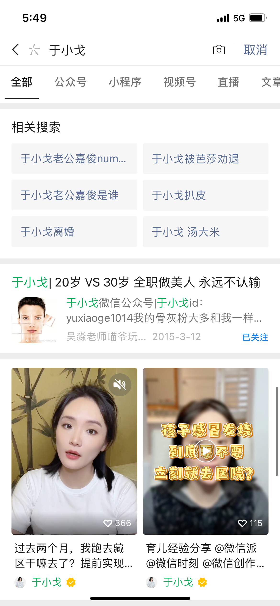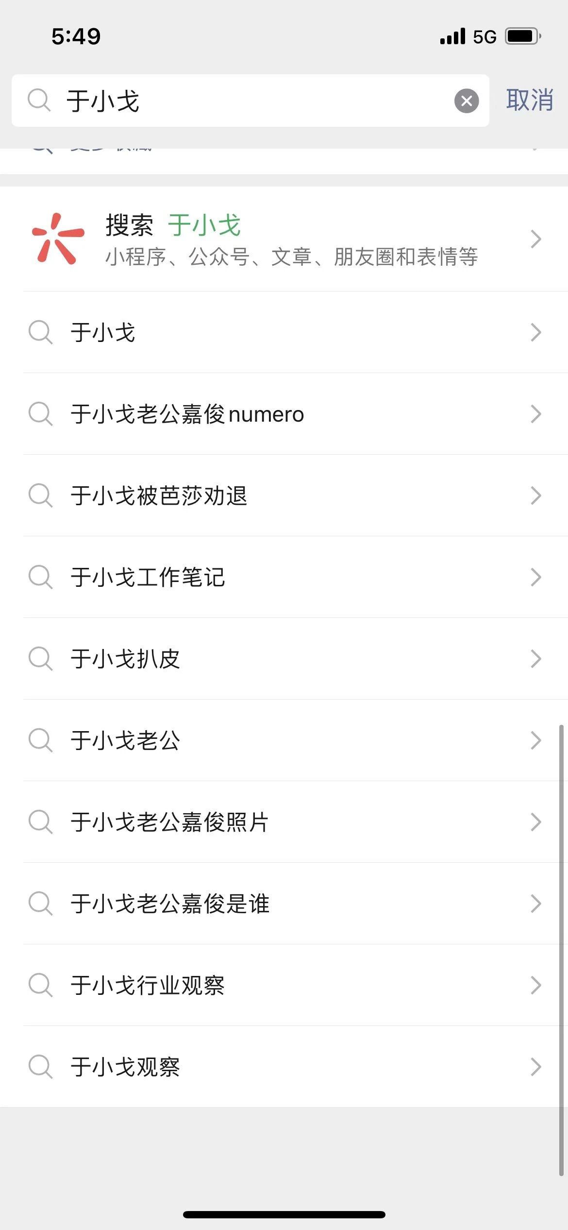 微信搜搜索“于小戈”出现相关搜索词:“于小戈被芭莎劝退”“于小戈扒皮””于小戈离婚”这三个诋毁个人名誉的相关搜索词,请微信工作人员处理一下,万分感谢。