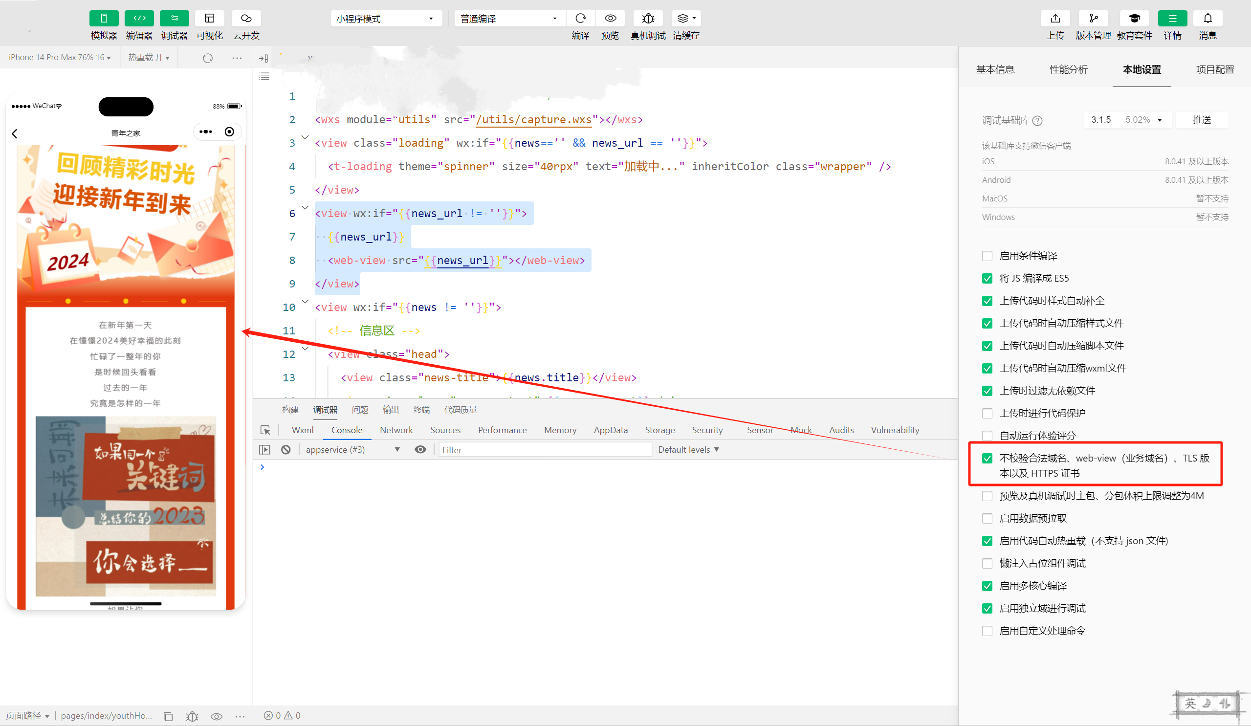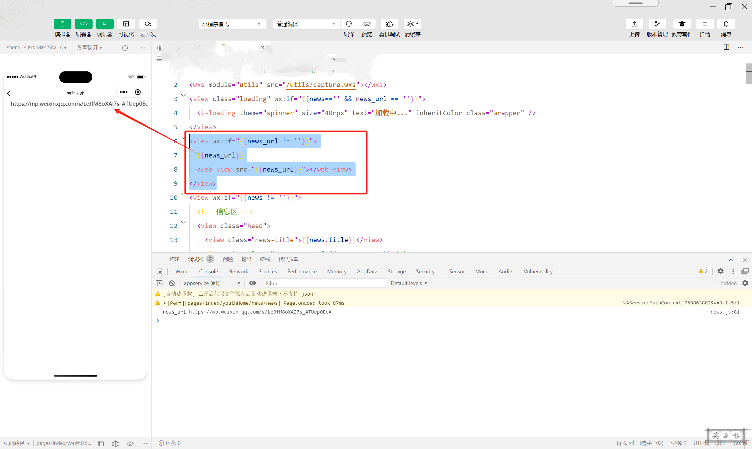 web-view url无法打开小程序关联的公众号文章,目前微信小程序已经与公众号关联,链接就是已关联的微信公众号发布的文章,但是开发测试的时候打不开文章链接,目前想法是不通过调用微信公众平台的api,直接在后台调用文章的url,有大佬知道如何修改调试吗?
