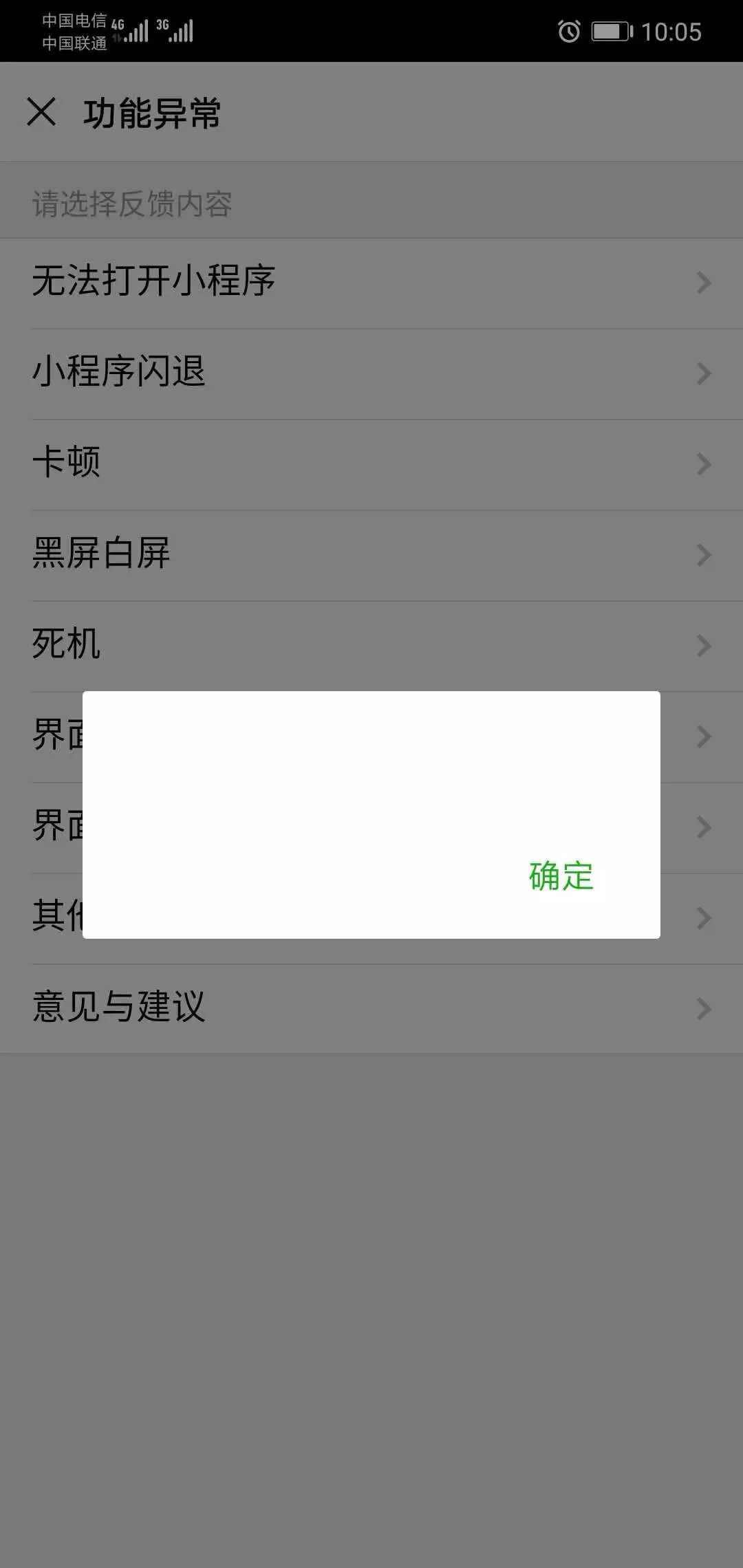 安卓手机,断网状态下点击意见反馈,点击后再联网,就会出现