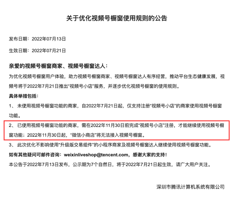 1、视频号小店上线后,用标准版交易组件的小程序是否受影响?看相关公告,说2022年11月30日就不支持了,后续该如何操作?
