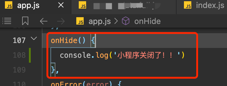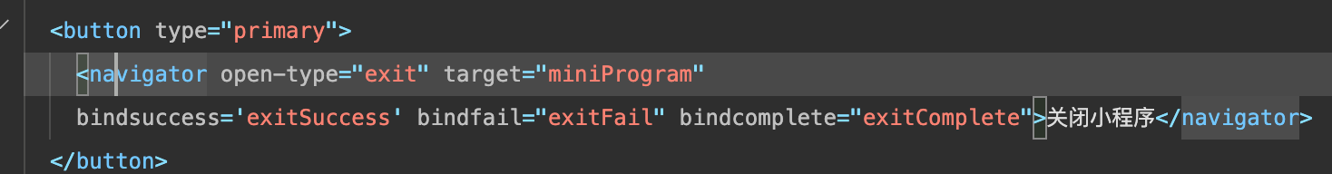 // app.jsonHide() {console.log('小程序关闭了!!')},// index.js<navigator open-type="exit" target="miniProgram">关闭小程序</navigator>