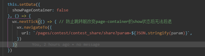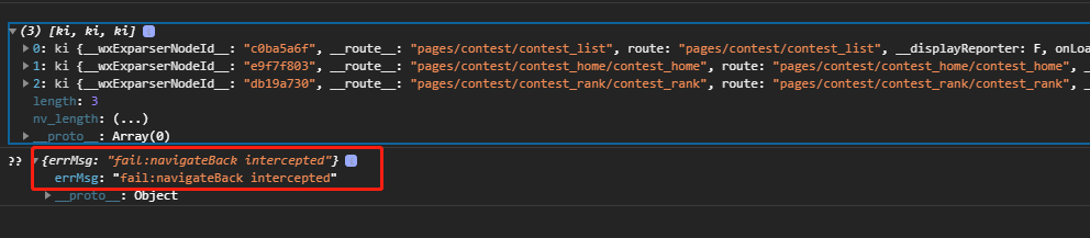 使用wx.navigateBack()返回一次后,再次调用wx.navigateBack()会出现fail:navigateBack intercepted的错误,但是再次调用前打印出页面栈是有页面的。