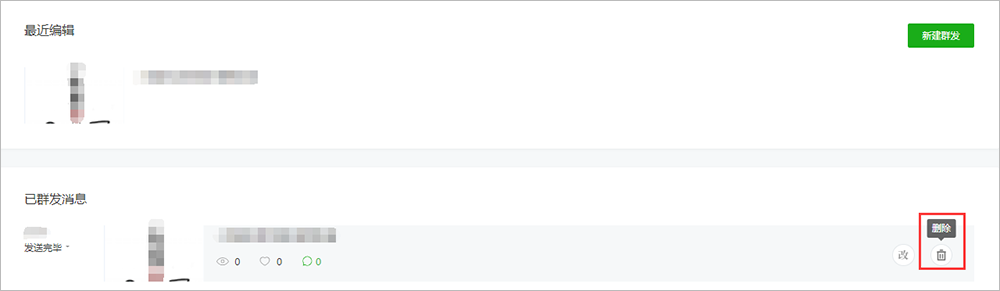 温馨提示:目前在微信公众平台中只能删除已发送成功的消息;正在群发中的消息,暂不支持撤回或删除。