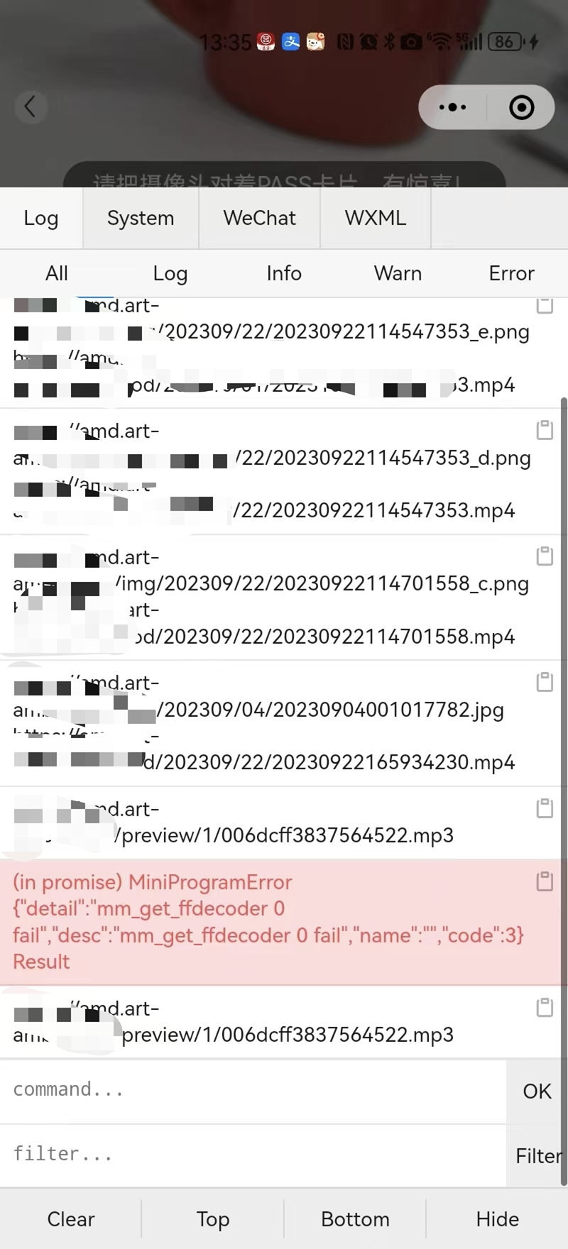 在小程序中使用xr-frame 2D-marker,识图时常现视频加载不出来现象,从console中查看发现报错信息,见下图