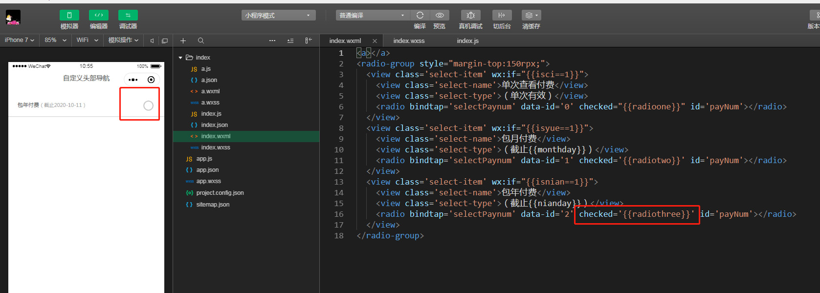 真机上按钮显示未被选中 实际已选中(可支付,未选择时不可支付)