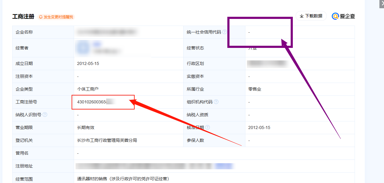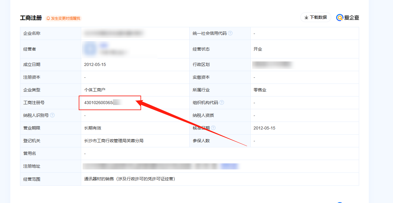 用爱企查去查询,号码也是这个,然后复制粘贴到备案页面的【证件号码】中,一样提示未查询到企业信息,请检查主体证件号是否有误