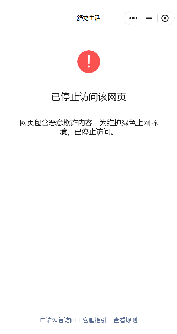 刚购买好备案好的阿里云域名配置到小程序用不了为什么?显示:已停止访问该网页,网页包含恶意欺诈内容,为维护绿色上网环境,已停止访问。