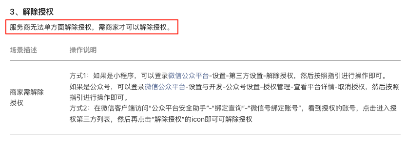 目前服务商无法是不能解除授权的,只能联系商家操作解除授权。