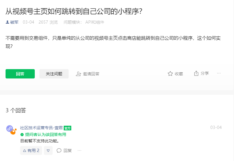 从视频号主页跳转小程序可以支持吗?