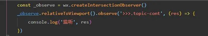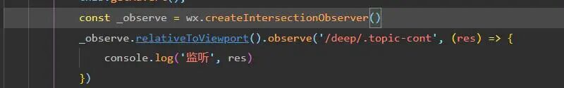 如图,在父组件创建IntersectionObserver,然后用深度选择子组件里的元素提示 " [pages/index/index] Node \"/deep/.topic-cont\" is not found. Intersection observer will not trigger. "