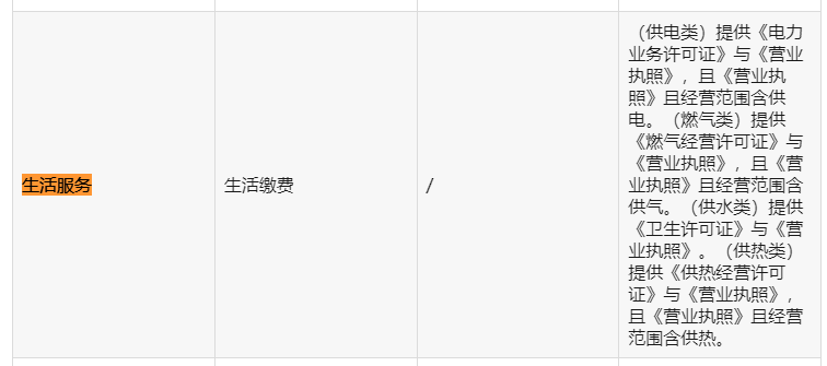 目前【生活服务】类目下只有【生活缴费】可申请。