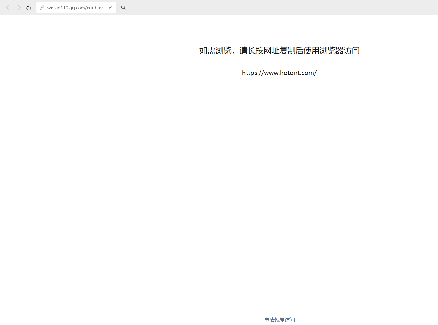 该提示严重影响用户体验,微信网页下方的“申请恢复”已经申请了,但是依然没有解除访问限制,希望管理员帮忙查看问题原因,如有其他问题烦请告知,十分感谢。@微信朋友圈&外链咨询