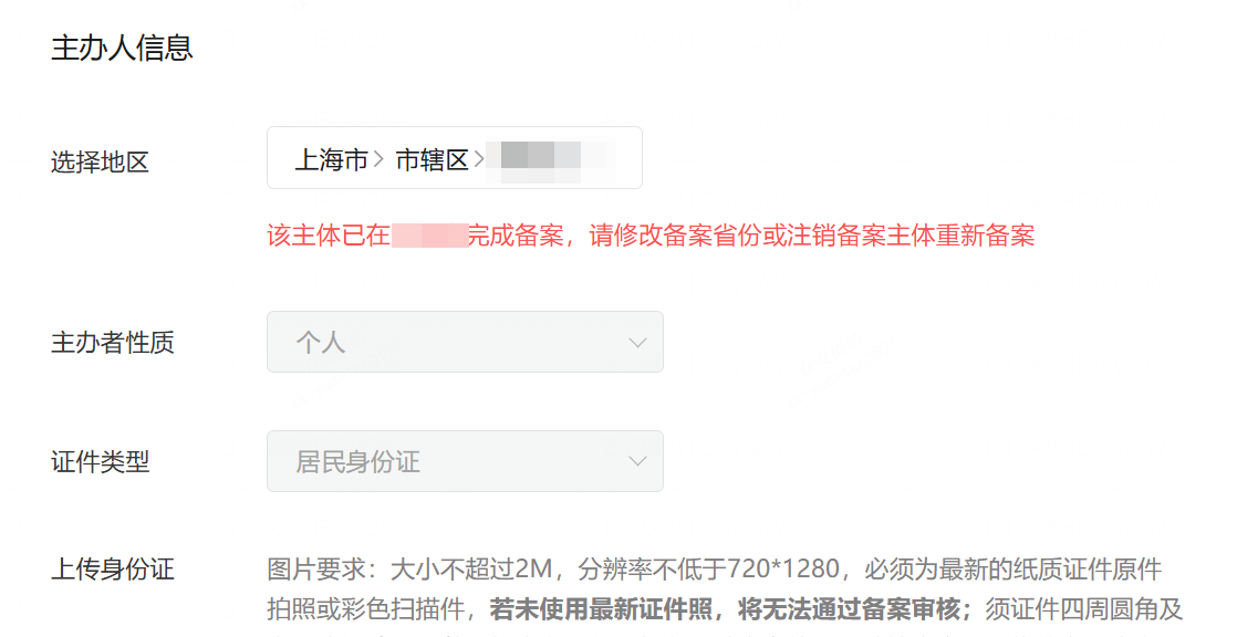 中间换过身份证,现在的地址就是上海。没有备案信息修改入口