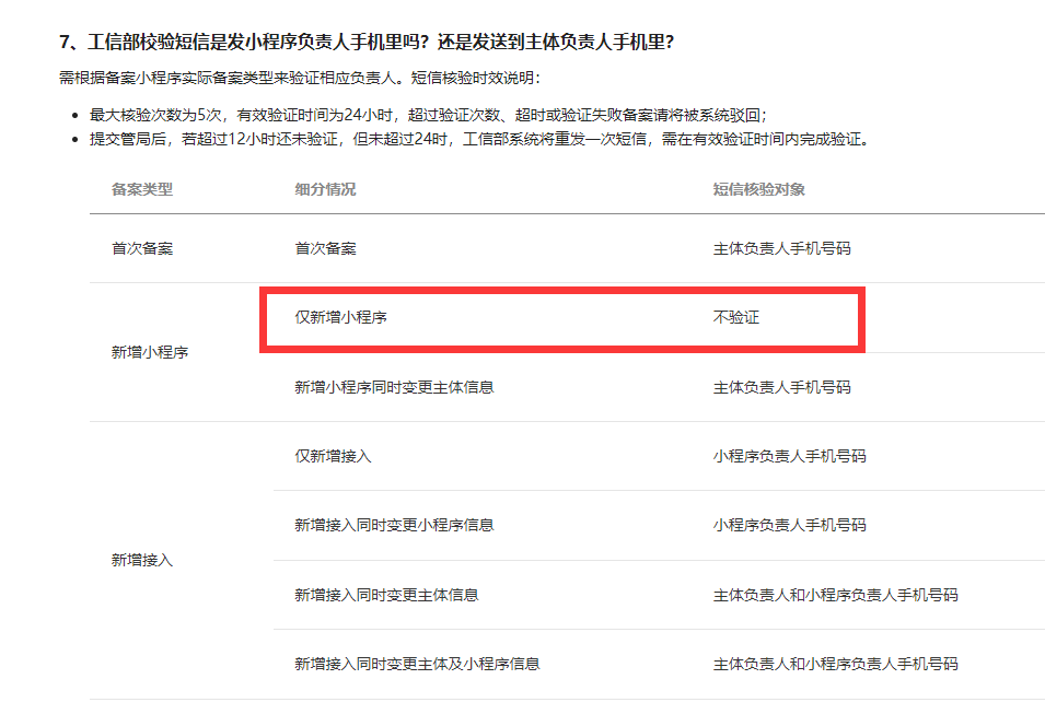 同主体已备案过,新增小程序备案,不需要短信核验