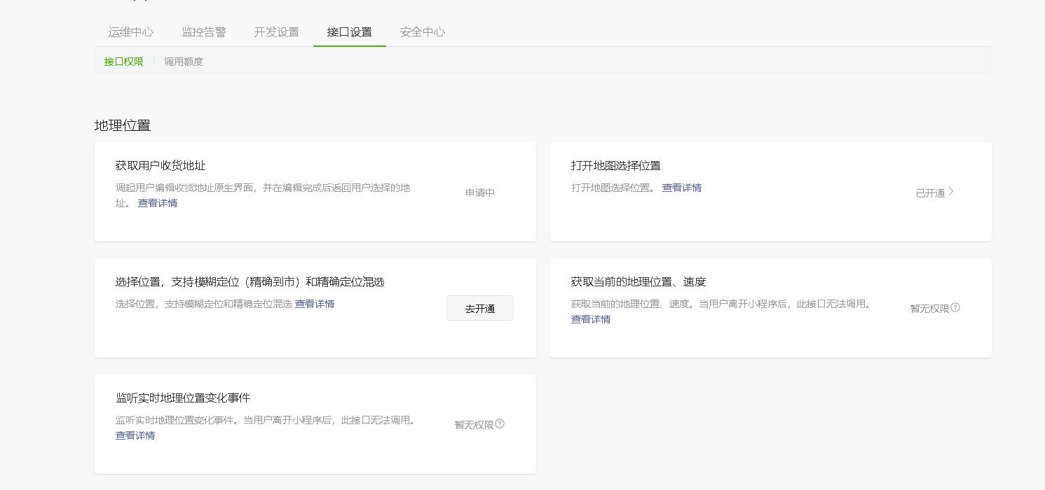 境外的小程序,然后添加了五六个类目了,但是获取获取当前的地理位置、速度这个接口就是不给权限,这个具体是要加哪个类目才可以有权限申请呢