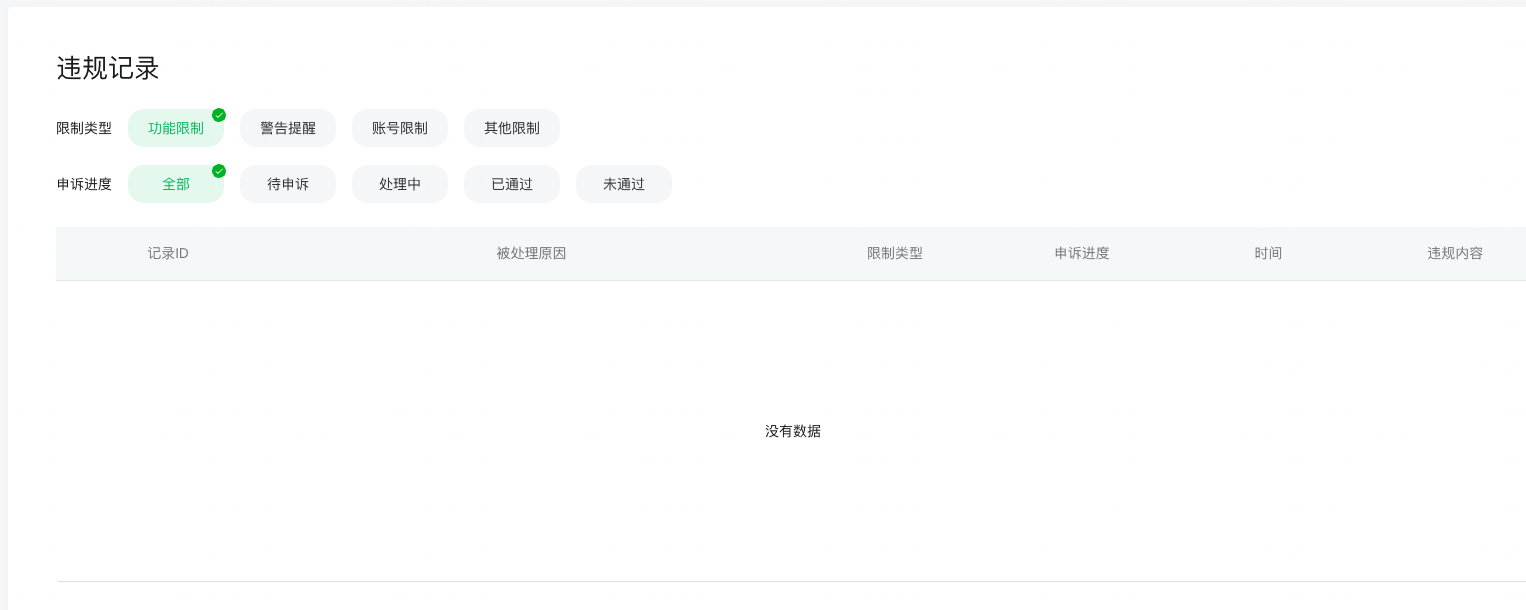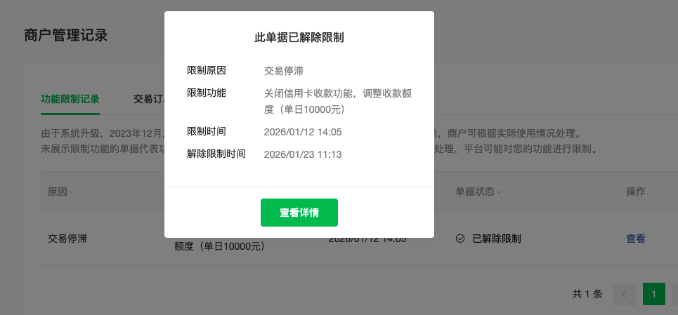 小程序确认了没有违规信息。支付平台也没有违约信息。下面是截图。