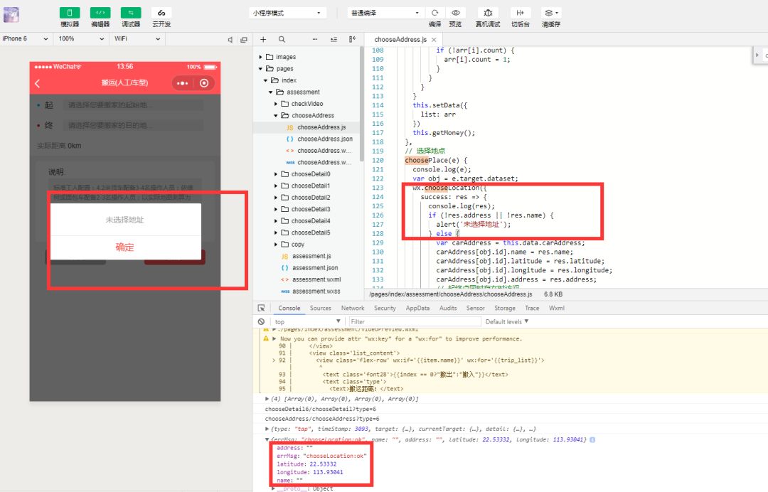选择地址没有name和address