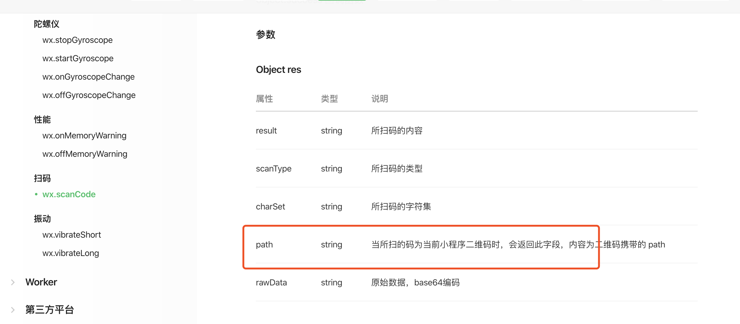 根据 小程序内部 扫一扫功能 的 开发文档,返回值是包含了 path参数。 但用ios最新版本微信之后,发现path参数不存在了。