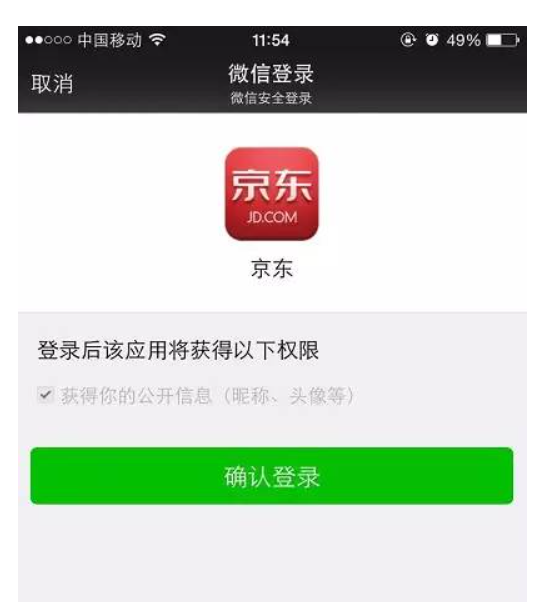 这两个截图的展示效果,以及页面上展示的信息描述不同,是因为第一张图片是移动应用的AppID(京东app)申请授权,另一个是公众号的appid吗?(还是说当前生产上的效果都是第二张图片)