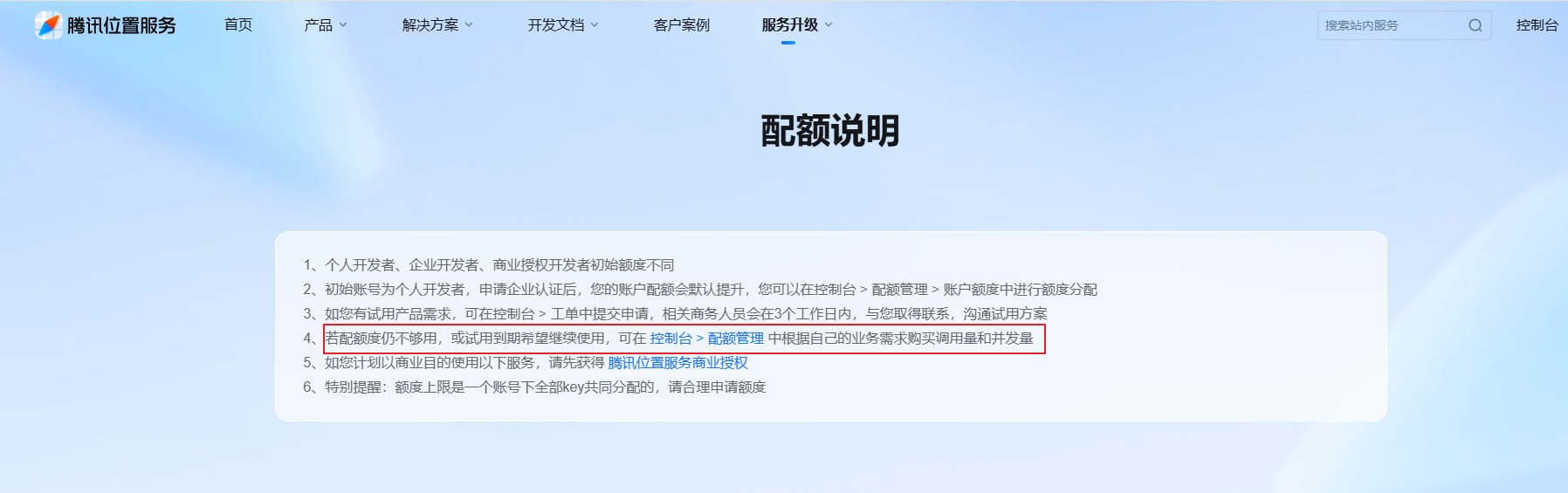 腾讯地图位置接口/ws/distance/v1/matrix?mode=driving,企业账户,已分配额度,第一次就提示,此key每日调用量已达到上限