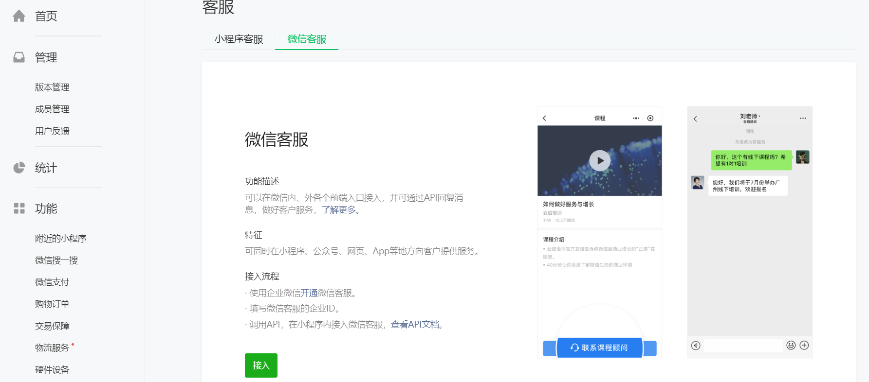 还是说除了是在企微接入的以外,实际上【微信客服】和【小程序客服】没什么区别