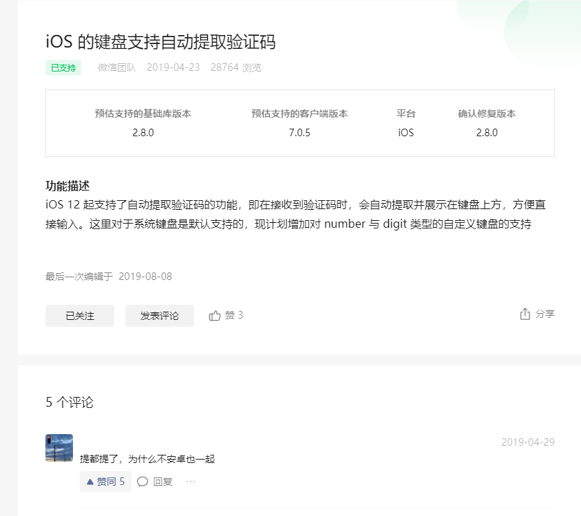 ios键盘可以自动提取短信验证码,现在部分安卓机型在 app 上也可以实现提取验证码,请问 小程序 的会支持吗?