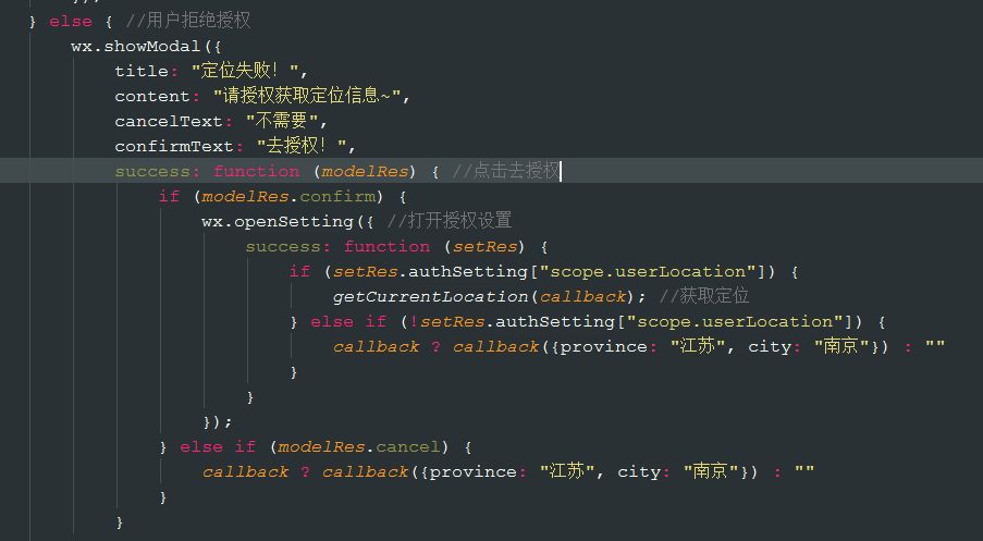 我在点击事件里 打开设置,授权位置信息后,返回界面,在 getSetting的success的回调方法里,调起getLocation,还是获取不到数据,但是刷新界面就可以获取到,什么情况??