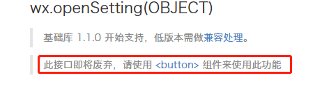 原无需用户点击即可直接调用wx.openSetting接口的实现方式将不再支持,即将废弃的错误使用方式示例如下: