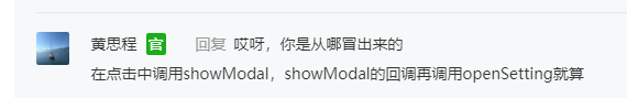 测试通过bindtap调用showModal showModal回调中再调用openSetting是可以的