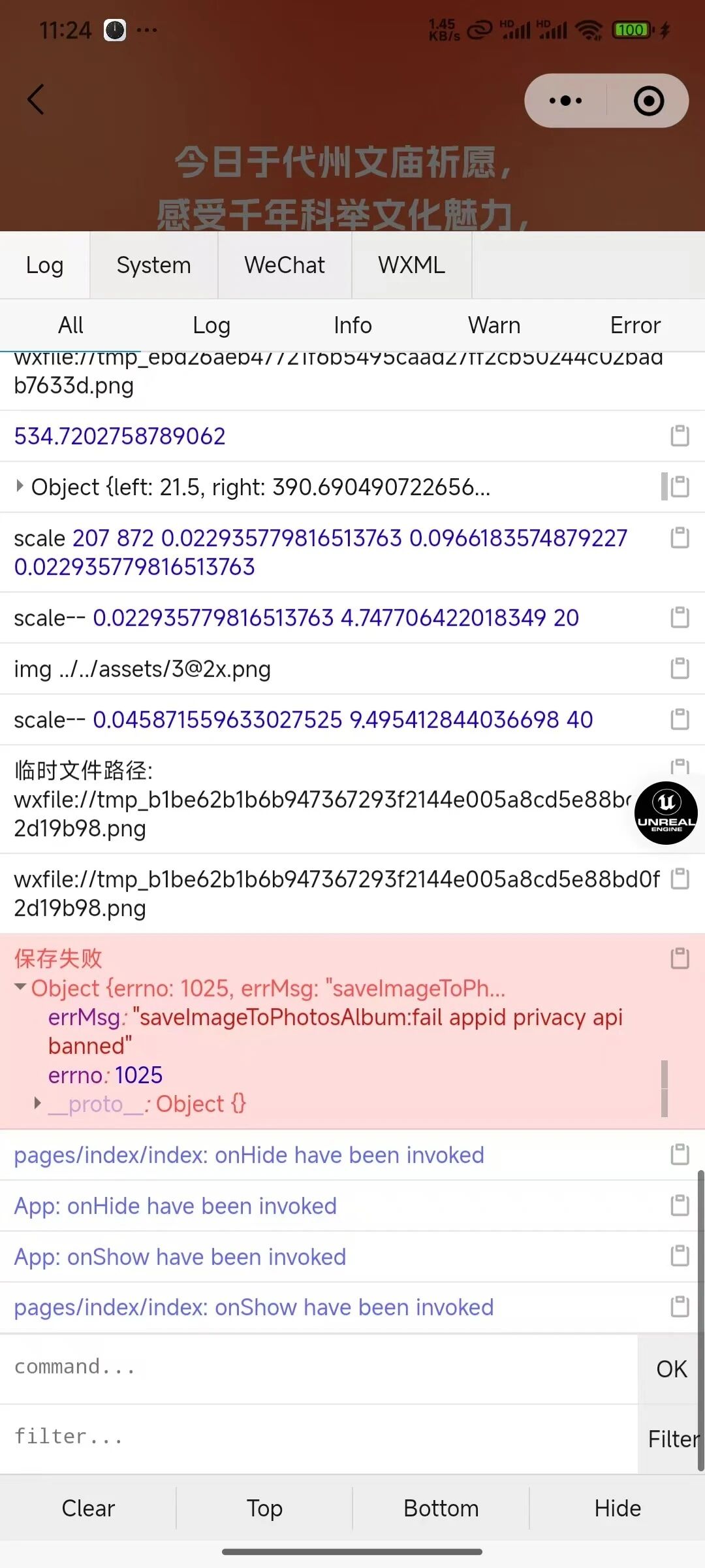 什么原因呢, 隐私协议和app.json中scope.writePhotosAlbum 都加上了, APPID:wx9dd4033f37a9fa9f, 万分感谢