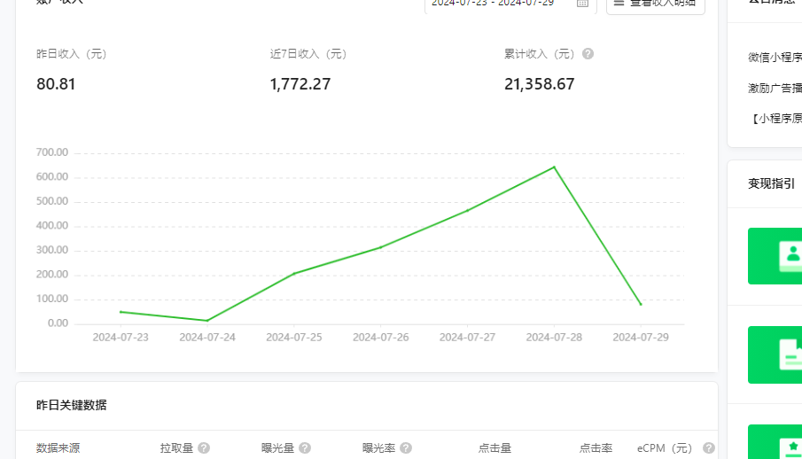 得综合去看你广告的拉取量、曝光率、ecpm