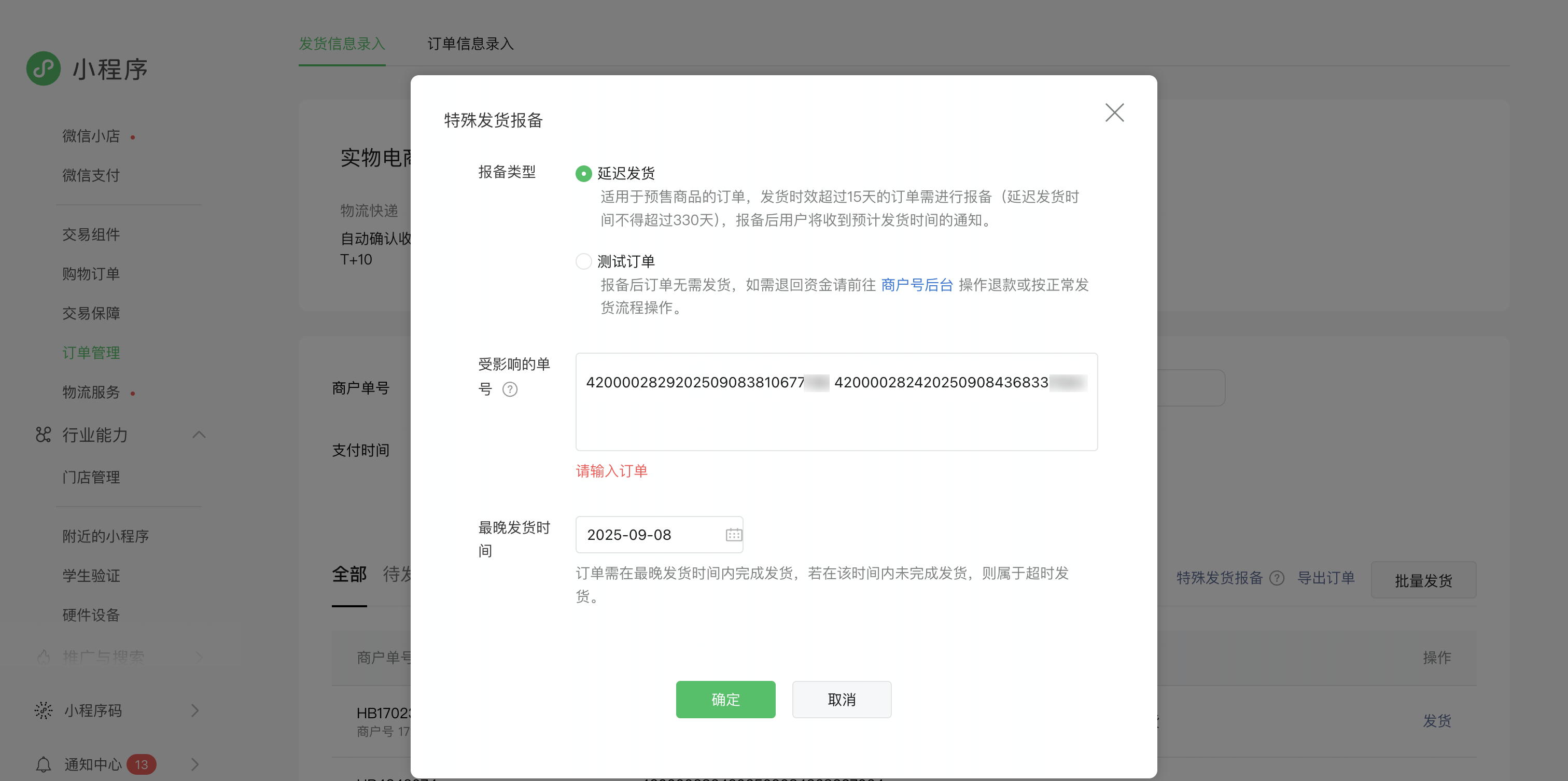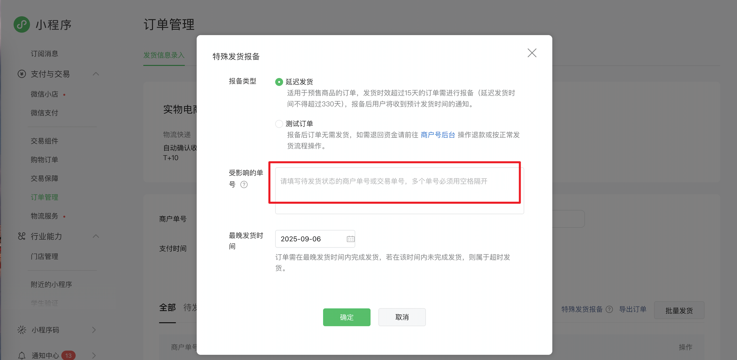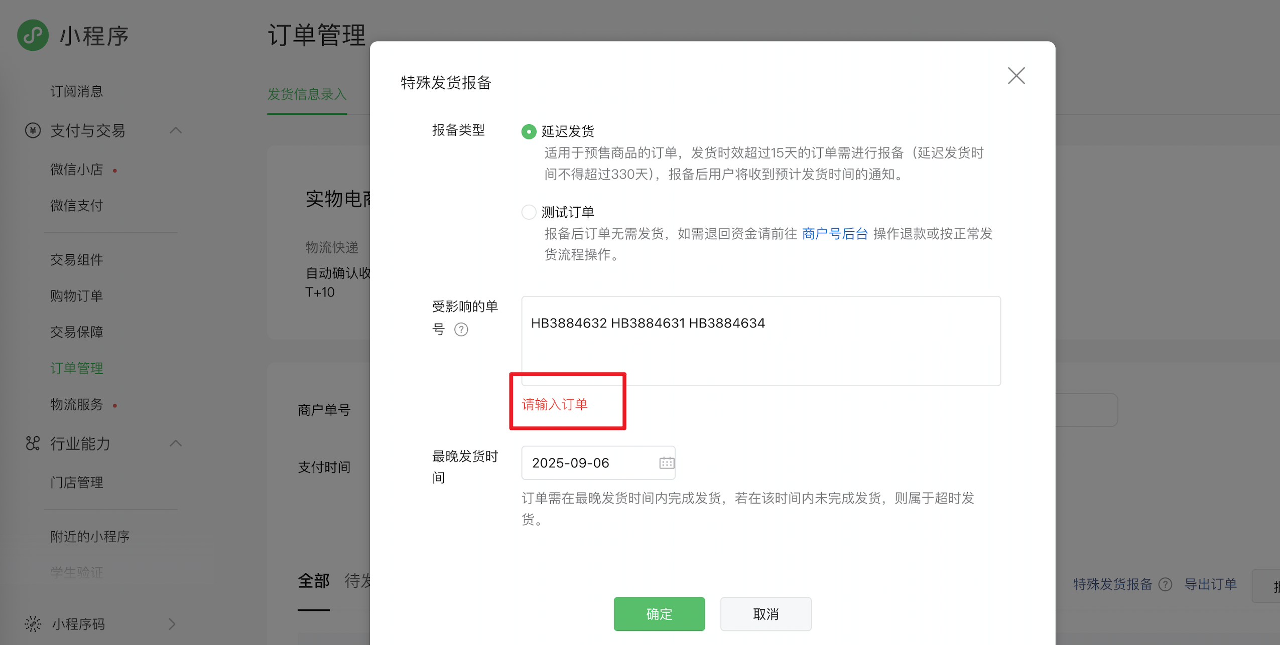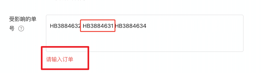 根据上图“受影响的单号”提示:“多个单号必须用空格隔开”,按照要求输入订单但是无法提交,并提示请输入订单。