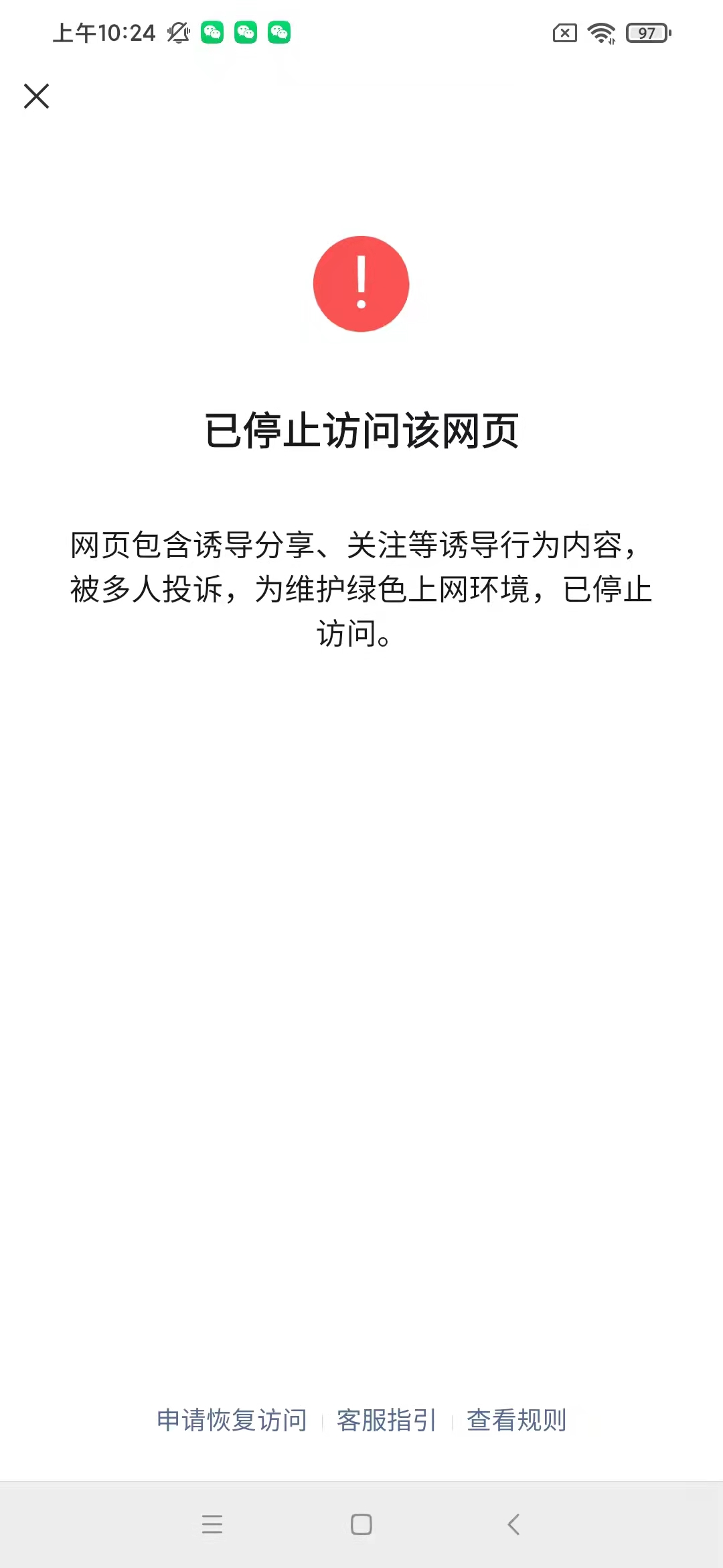 我司网页内容分享到微信,打开提示诱导分享、关注等诱导行为内容,被多人投诉,经过内容安全部同事,再次审核,全面检查,并没有发现恶意违规内容,可能是被恶意举报,烦请微信小伙伴,再次检查,谢谢!!