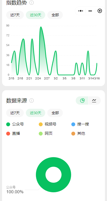 比如我这个‘’狐言狐语树洞''的数据 都是来自公众号? 那怎么区分公众号和搜一搜的数据啊 明明我应该大部分是搜一搜啊,这边公众号的数据 具体又是指什么呢??而且视频号也有发 怎么完全视频号没有数据,但是后台是有播放量的啊???求解答数据来源