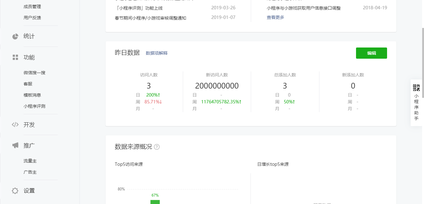 访问数为20亿 这是不是一个很严重的bug啊 还是说我真的有这么多人访问么 中国的所有人都访问过我的小程序? 吓了我一跳