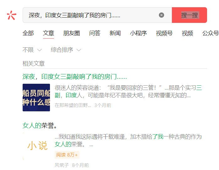 哈喽!!服务号发布一篇文章,用号内搜,检索标题关键词或完整标题都不能搜出来~搜一搜文章完整标题却能看到其他账号转载的文章。