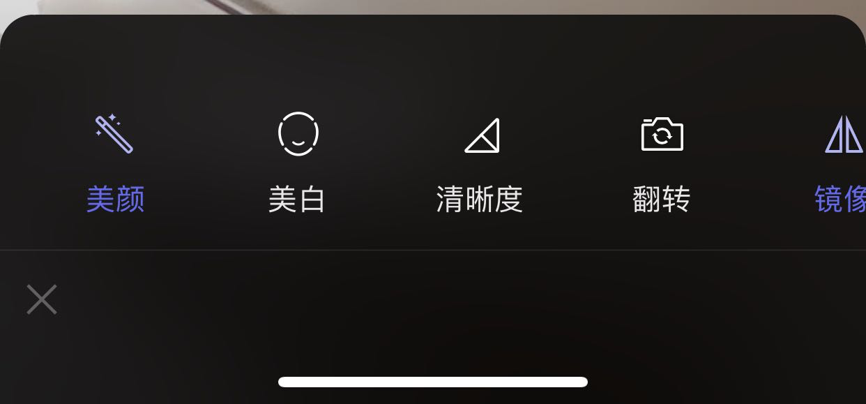 左滑设置菜单栏可以看到“镜像”、“静音”按钮。