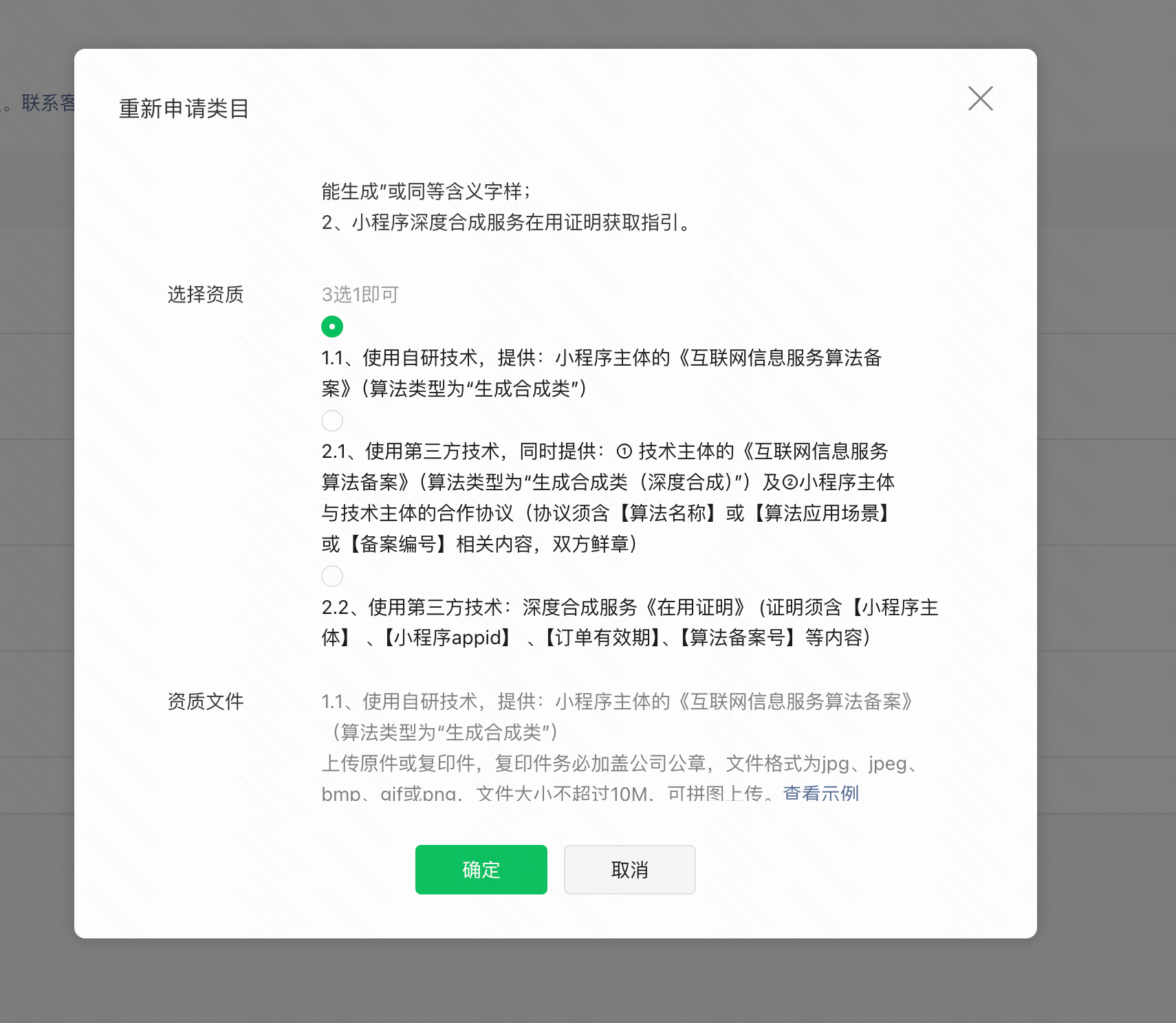 希望帮忙解答一下,我感觉都无法提交,第一种我不是自研的模型,第二种我后端用的第三方API,没有什么合作协议,第三,我没有用微信服务市场中的模型,所以需要解答一下我该怎么做