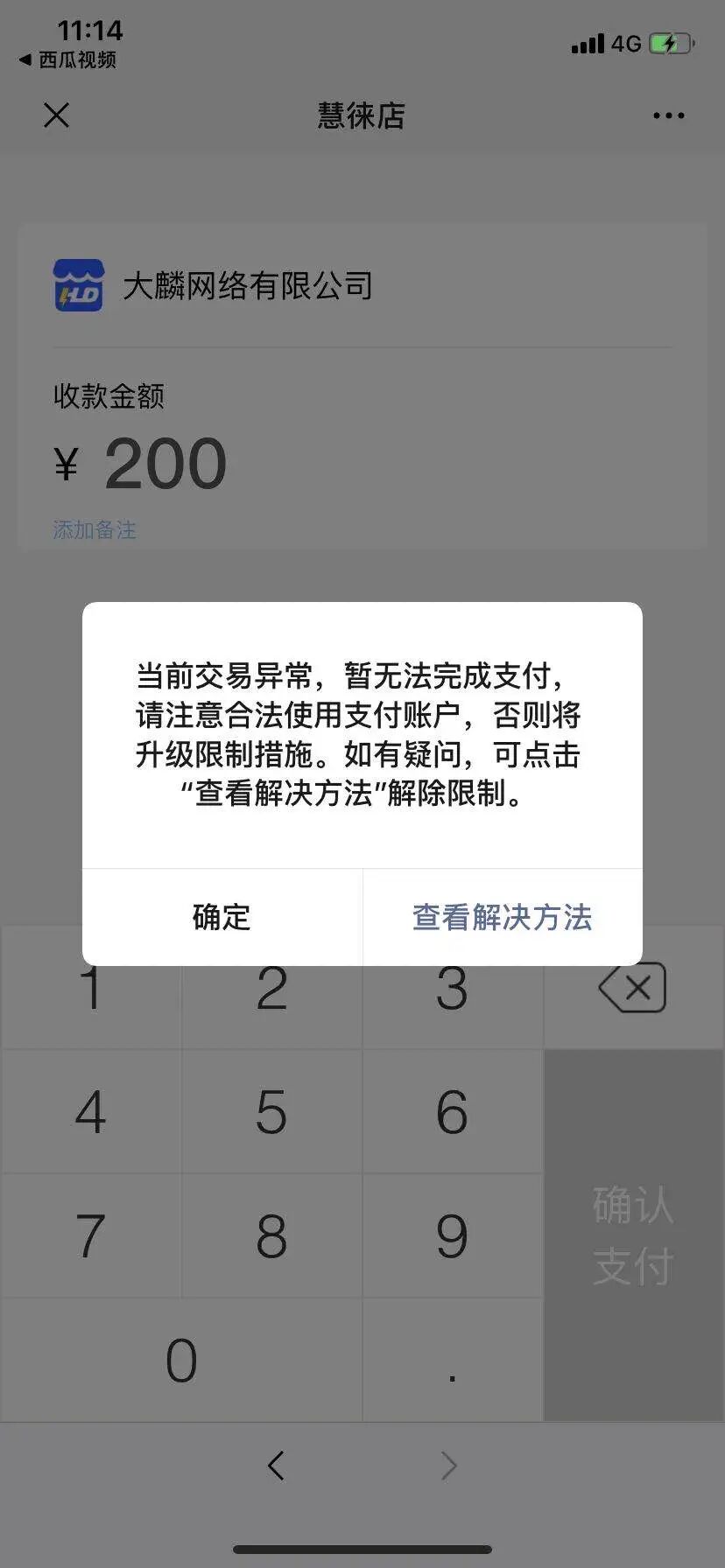 这个是付款方 给我提供的截图, 我是商家, 他给我付款,但是出现了这个,请问是他的问题,还是我的问题,我也找了10多个身边的旁边 帮我试二维码 都没有问题